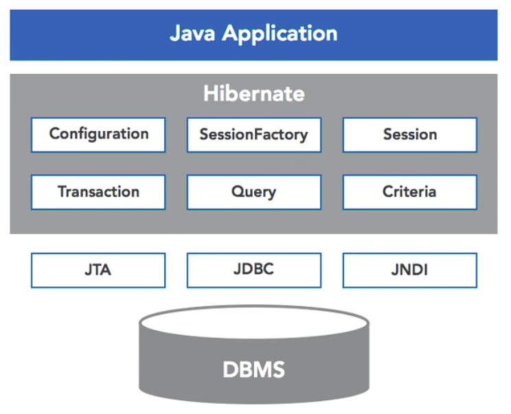 Hibernate can be used in any Java application (JSP, Spring, etc). Data is represented as simple Java objects or POJOs and a session manager is used to interact with these objects. Hibernate hides the details of the database schema enabling you to focus on implementing the business logic.