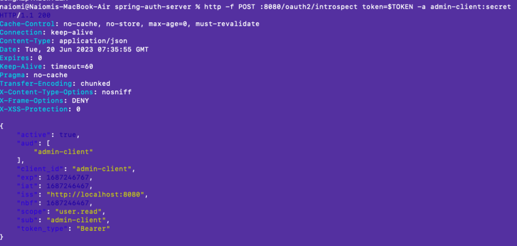 http -f POST :8080/oauth2/introspect token=$TOKEN -a admin-client:secret